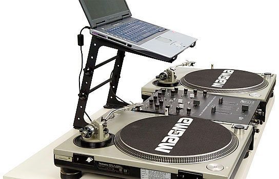 • Inteligente soporte de metal para integrar fácilmente un ordenador portátil a un equipo controlado por DJ.