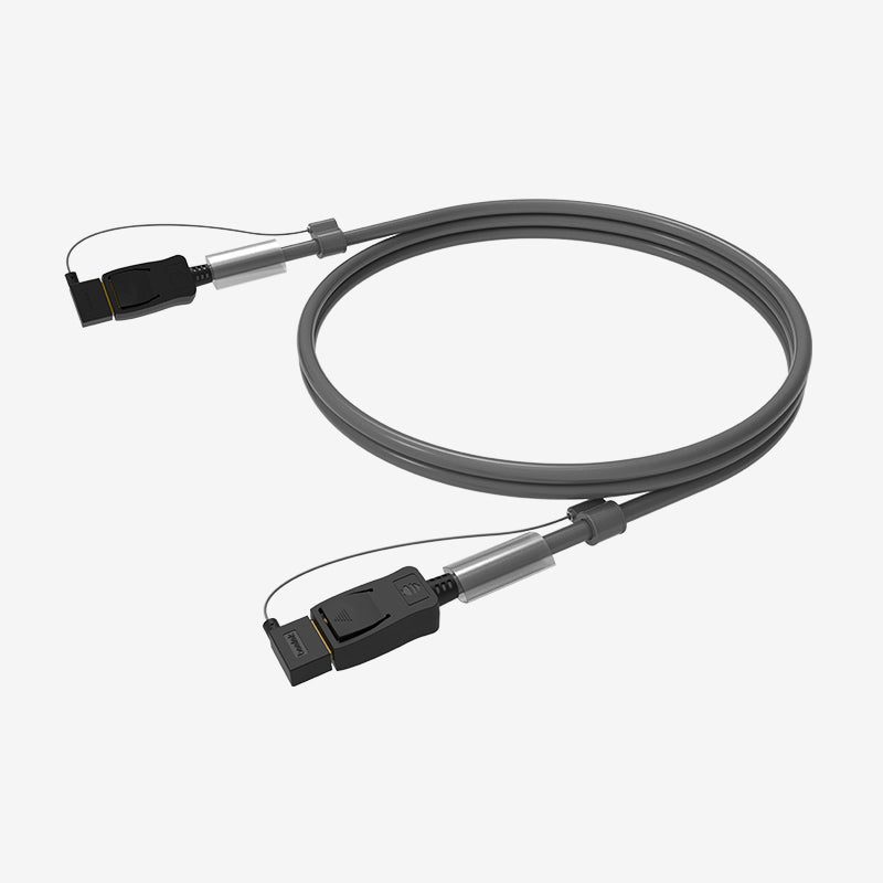 El cable DisplayPort tiene un conector chapado en oro de 15 μm que admite 1000+ enchufes de entrada y salida y dispone de un tornillo de unión moleteado de acero inoxidable con una exclusiva tapa antipolvo con cadena de correa desmontable.