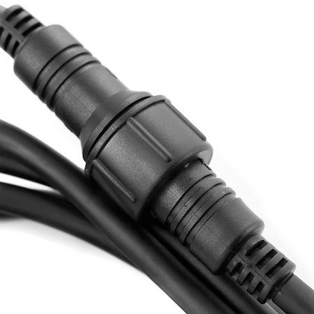 El cable es impermeable y cuenta con un conector macho de 3 pines a hembra de 3 pines en cada extremo. La impermeabilidad está garantizada por un cierre de rosca.