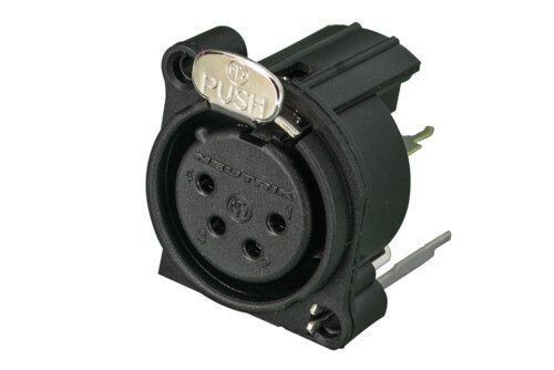 Conector de Chasis XLR hembra de 4 polos, conexión a tierra: contacto de tierra separado al conector de acoplamiento y panel frontal, soporte de PCB vertical, codificación de color posible