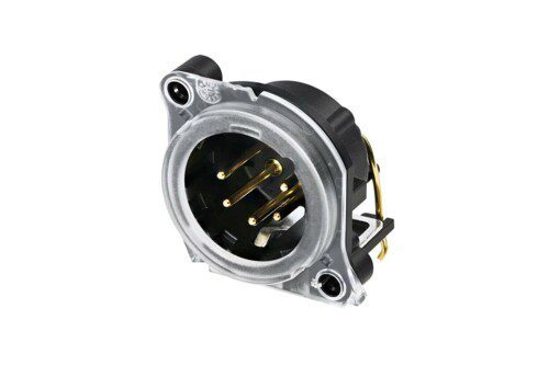Conector de Chasis XLR macho de 5 polos con característica de halo única de Neutrik y empuje asimétrico no metálico.