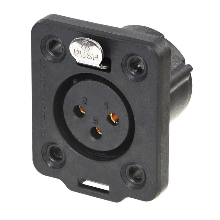 XLR 3P Chassis – female TOP Contactos de oro – carcasa negra (Contactos de oro – carcasa negra) NC3FDXTOP