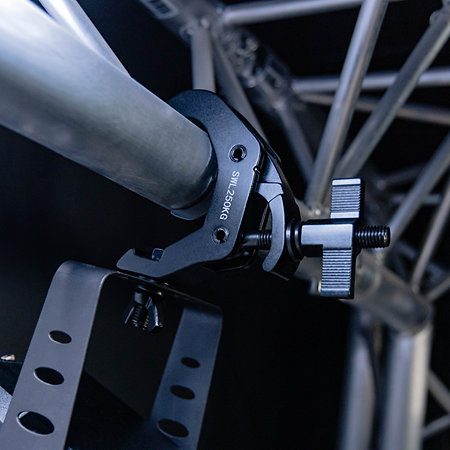 Su discreto acabado en negro le permite integrarse en tus estructuras sin alterar la estética visual del escenario. Se suministra con una pinza mariposa y una tuerca Nylstop, está listo para usar y simplificará enormemente tus montajes.
