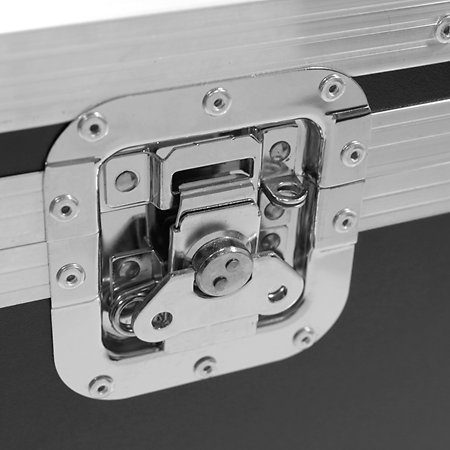Gracias a su estructura de madera contrachapada de 9 mm de espesor y su revestimiento de resina negra, este Flight Case es a la vez robusto y elegante. También cuenta con esquinas esféricas de acero, cierres de mariposa y asas empotradas para facilitar su transporte y manipulación.