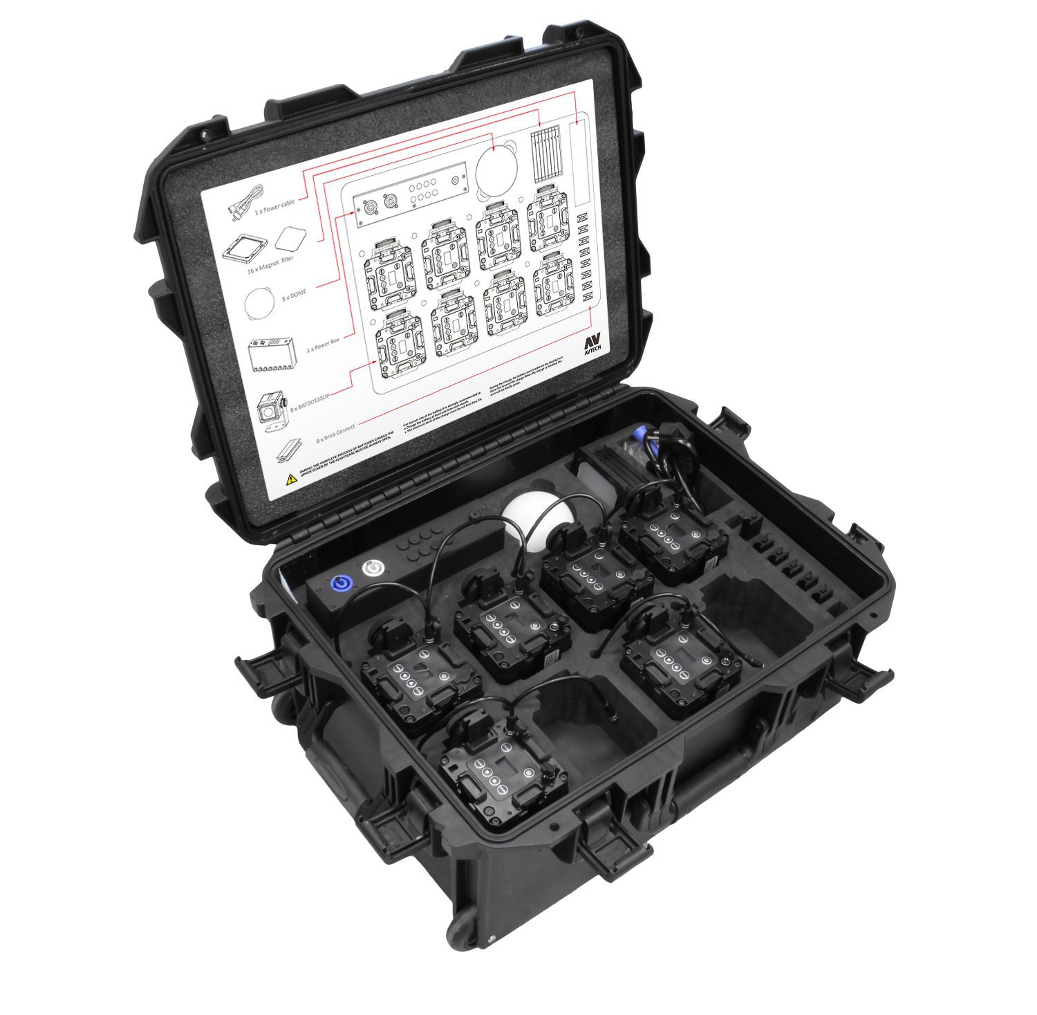 Flightcase con conectores powercon para la carga de baterías.