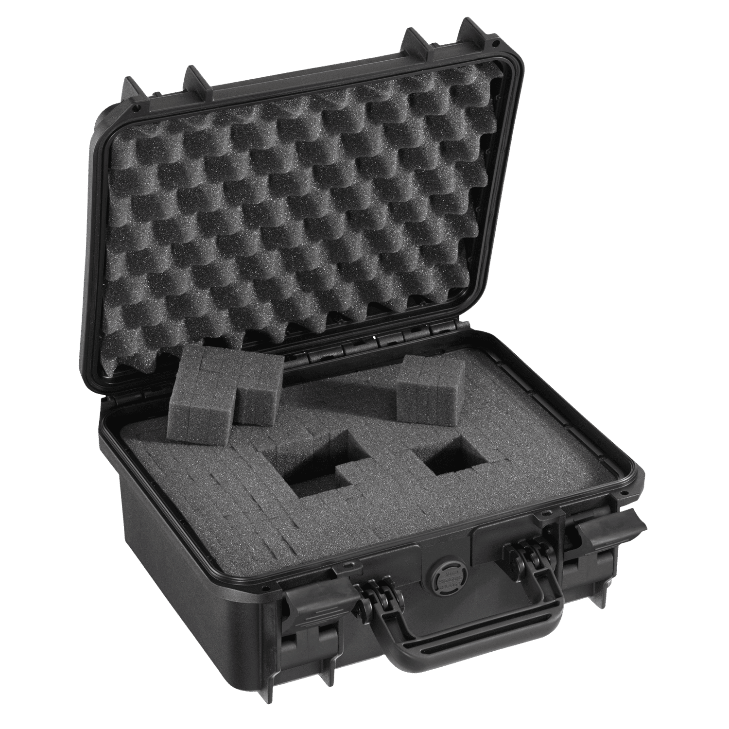 Este resistente maletín es ideal para proteger equipos valiosos durante su almacenamiento y transporte. La espuma precortada incluida permite la personalización para conseguir un ajuste perfecto, mientras que los robustos pestillos de doble cierre ofrecen una seguridad óptima y son fáciles de abrir. Con un grado de protección IP67, el carrito ofrece una protección eficaz tanto contra el polvo como contra el agua, mientras que la válvula automática de liberación de presión iguala la presión interna del aire.