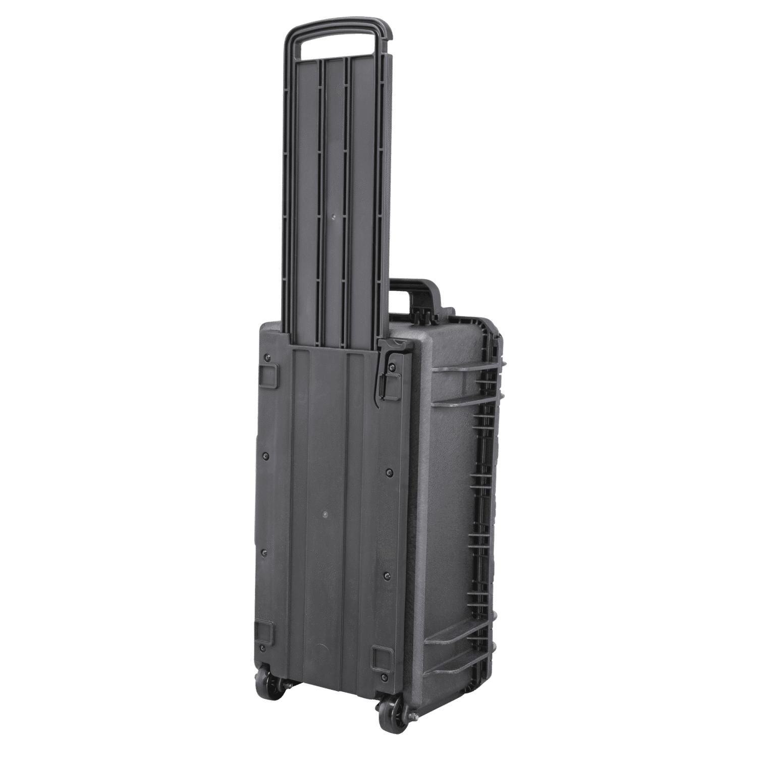 Este resistente carrito es ideal para proteger equipos valiosos durante su almacenamiento y transporte. La espuma precortada incluida permite la personalización para conseguir un ajuste perfecto, mientras que los robustos pestillos de doble cierre ofrecen una seguridad óptima y son fáciles de abrir. Con un grado de protección IP67, el carrito ofrece una protección eficaz tanto contra el polvo como contra el agua, mientras que la válvula automática de liberación de presión iguala la presión interna del aire. El asa y las ruedas hacen que sea fácil de transportar.