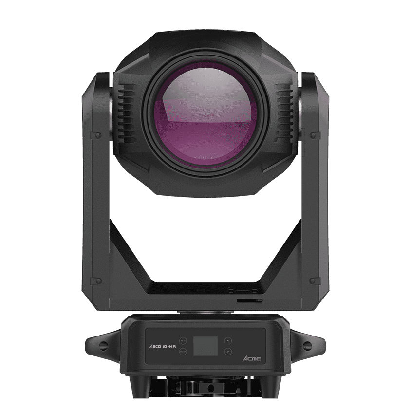 Bajo la lente frontal de 180 mm, le espera un área funcional compleja pero compacta. Gobos estáticos, gobos giratorios, colores saturados, 2 prismas, rueda de animación, obturadores de encuadre, CMY y CTO lineales. Todas las funciones se pueden superponer para crear efectos originales y complejos, manteniendo un alto flujo luminoso. Con un ángulo de 5°, el flujo luminoso alcanza 84.300 lx a 5 m y 20.350 lx a 10 m. Con una salida total de 33.000 lúmenes, el AECO 10-HR no solo es una luz móvil de perfil, sino también un complemento ecológico y de bajo consumo, ideal para conciertos a gran escala, estudios de televisión, espectáculos teatrales y diversas representaciones artísticas.