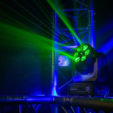 Iluminadores en ciernes y entusiastas de la iluminación, ¡el BoomTone DJ Moving Bee FX-LZR es perfecto para ustedes! Fácil de usar, esta lira LED combina deslumbrantes efectos giratorios con un vibrante láser verde para iluminar sus eventos.