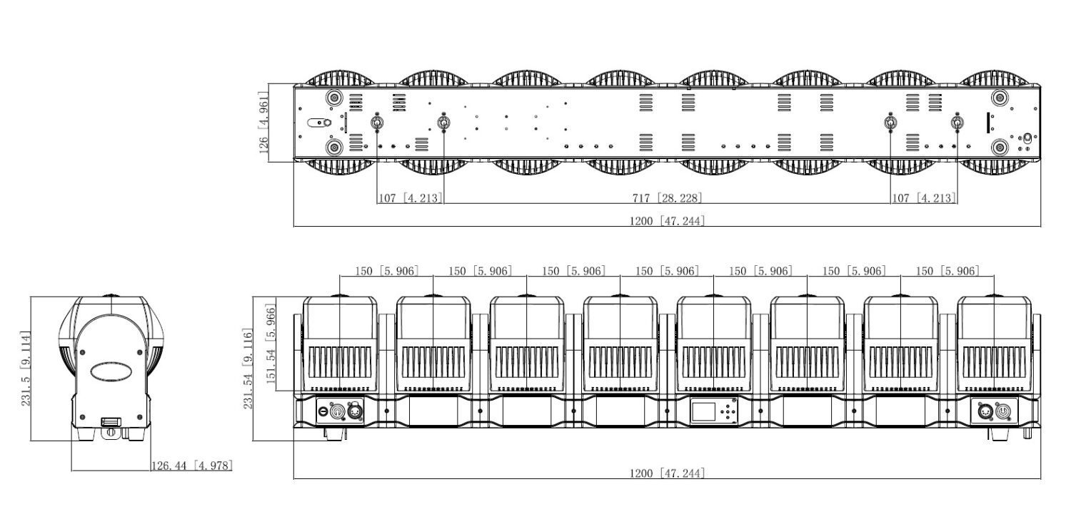 CUBED860 es una barra de iluminación escénica de alto rendimiento que cuenta con 8 MINI cabezas móviles individuales, cada una de las cuales está equipada con una potente fuente de luz LED RGBW 4 en 1 de 60W. Con su diseño versátil y sus avanzadas características, especialmente el sistema óptico basado en espejos, la CUBED860 es capaz de producir una amplia gama de efectos de iluminación dinámicos, nítidos y colimados, que cautivarán al público y realzarán sus actuaciones. Además, gracias al ingenioso diseño del anillo de neón frontal de cada cabezal, la BARRA puede aportar un efecto de iluminación ultrabrillante y mágico a los diseñadores de iluminación.