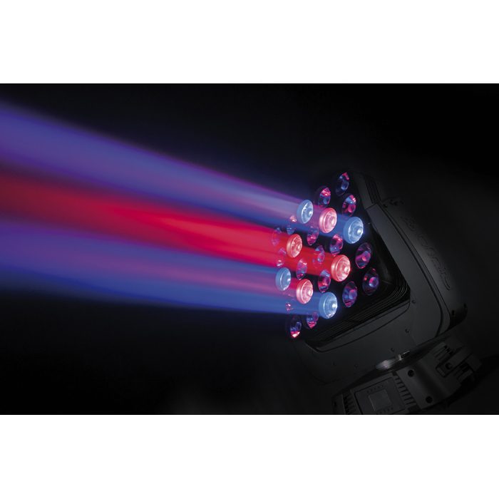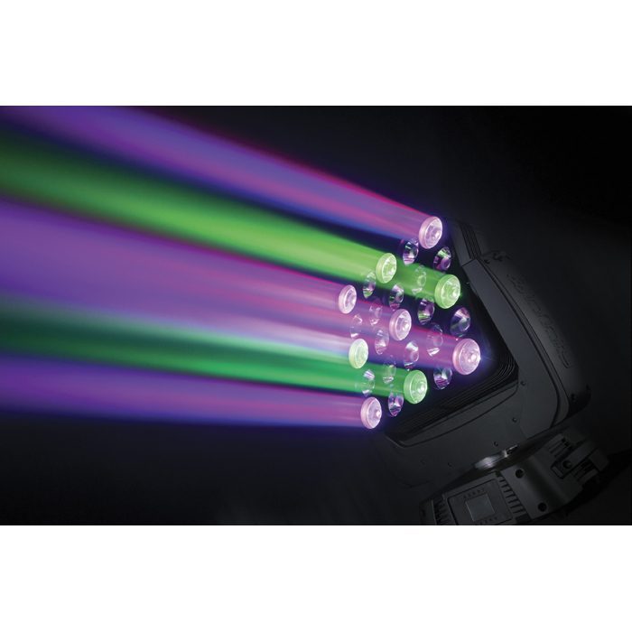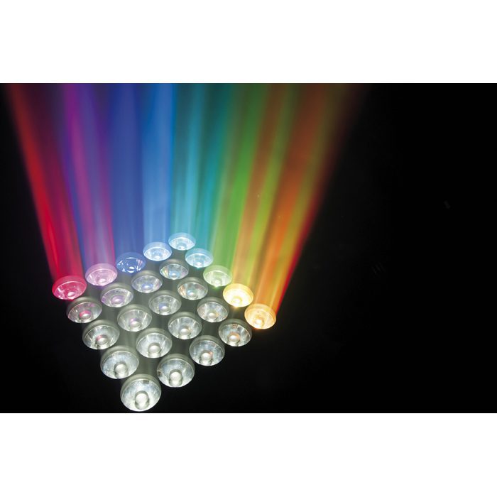 Los 25 LEDs Osram OSTAR RGBW de 15 W en combinación con un sistema óptico de alta calidad garantizan una paleta de espléndidos colores y una alta proyección luminosa. Los motores de alto par generan movimientos rápidos y, con un ángulo de tan solo 4,5°, sus haces de luz son sólidos y precisos.