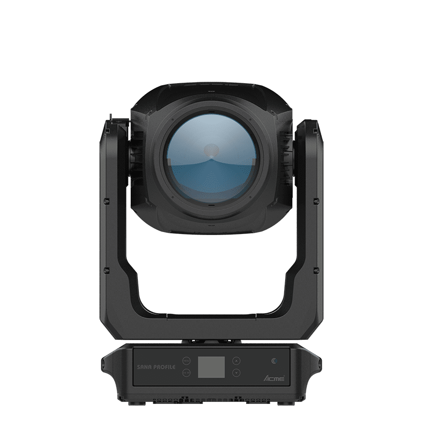 Para ampliar las posibilidades creativas, el SANA PROFILE cuenta con un sistema de mezcla de colores CMY para transiciones suaves, un CTO variable de 2700K a 7000K y una rueda de seis colores para colores saturados. La sección de efectos incluye 9 gobos estáticos, 7 gobos giratorios, una rueda de animación gráfica y dos prismas combinables para crear efectos aéreos en capas. Los filtros dobles Frost permiten transiciones fluidas desde haces nítidos hasta lavados suaves y uniformes. El sistema de encuadre cuenta con 4 láminas de obturador controlables individualmente con una rotación de ±90°, lo que permite un modelado preciso del haz y un oscurecimiento total instantáneo.