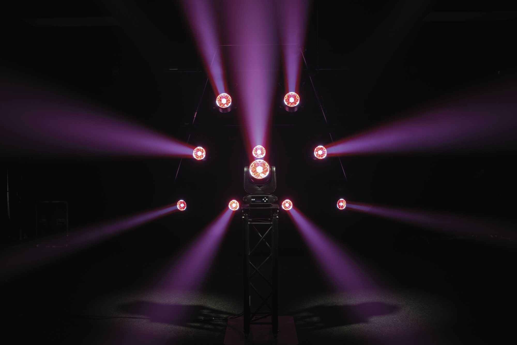 El Showtec Polar Wash 740 es una cabeza móvil wash LED potente, ligera y compacta que cuenta con zoom y un efecto de anillo LED. Es adecuado para aplicaciones interiores y exteriores. Su tamaño reducido no impide que los siete LED RGBL de 40 vatios se combinen para producir una salida de más de 4000 lúmenes. Además de los LED color lima, logra un CRI de 85 gracias a sus colores blancos. El Showtec Polar Wash 740 ofrece creaciones que van desde un haz dinámico de 3,5º hasta un wash de 44º con su zoom motorizado. Los siete LED RGBL disponen de dos secciones de control: el LED central y los LED exteriores. El anillo LED alrededor de los siete LED se puede controlar individualmente y crea patrones gráficos impresionantes en colores que se pueden elegir. Los patrones también se pueden indexar, rotar y rebotar de forma personalizada.