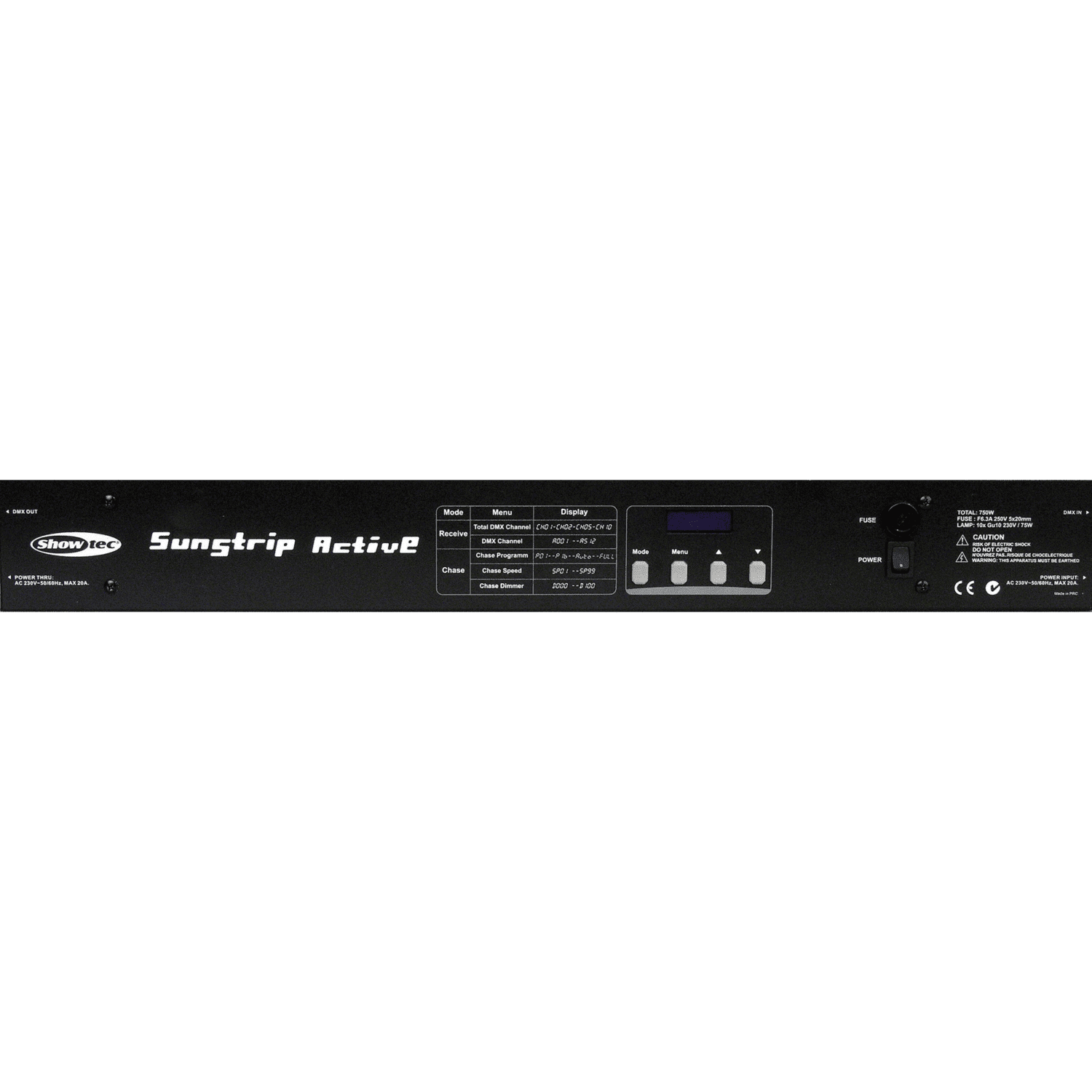 El Sunstrip Active110V MKII es el sucesor del popular Sunstrip Active. Es igual al Sunstrip Active, aunque esta versión le ofrece algunas funciones adicionales, tales como:: función de inversión, oportunidad de cambiar el logotipo en la pantalla al nombre de su empresa, función de protección para el botón de modo y direccionamiento rápido. Además esta versión se ha desarrollado especialmente para poder utilizarse con cualquier fuente de alimentación de 110 V/60 Hz. La unidad Sunstrip Active MKII ofrece cuatro modos DMX: 1 canal, 2 canales, 5 canales y 10 canales. Para un uso autónomo, la unidad Sunstrip Active MKII está equipada con 16 motivos incorporados además de con un dímer manual. Gracias a sus entradas y salidas Neutrik PowerCON, se ajusta a las necesidades más exigentes de usuarios en gira. Para facilitar su montaje, la unidad Sunstrip Active MKII viene equipada con dos soportes para montaje en pared/suelo, así como de varias tuercas M10 que le permiten colocar su abrazadera en cualquier posición. Para una mayor flexibilidad le recomendamos el soporte múltiple especial (30713)