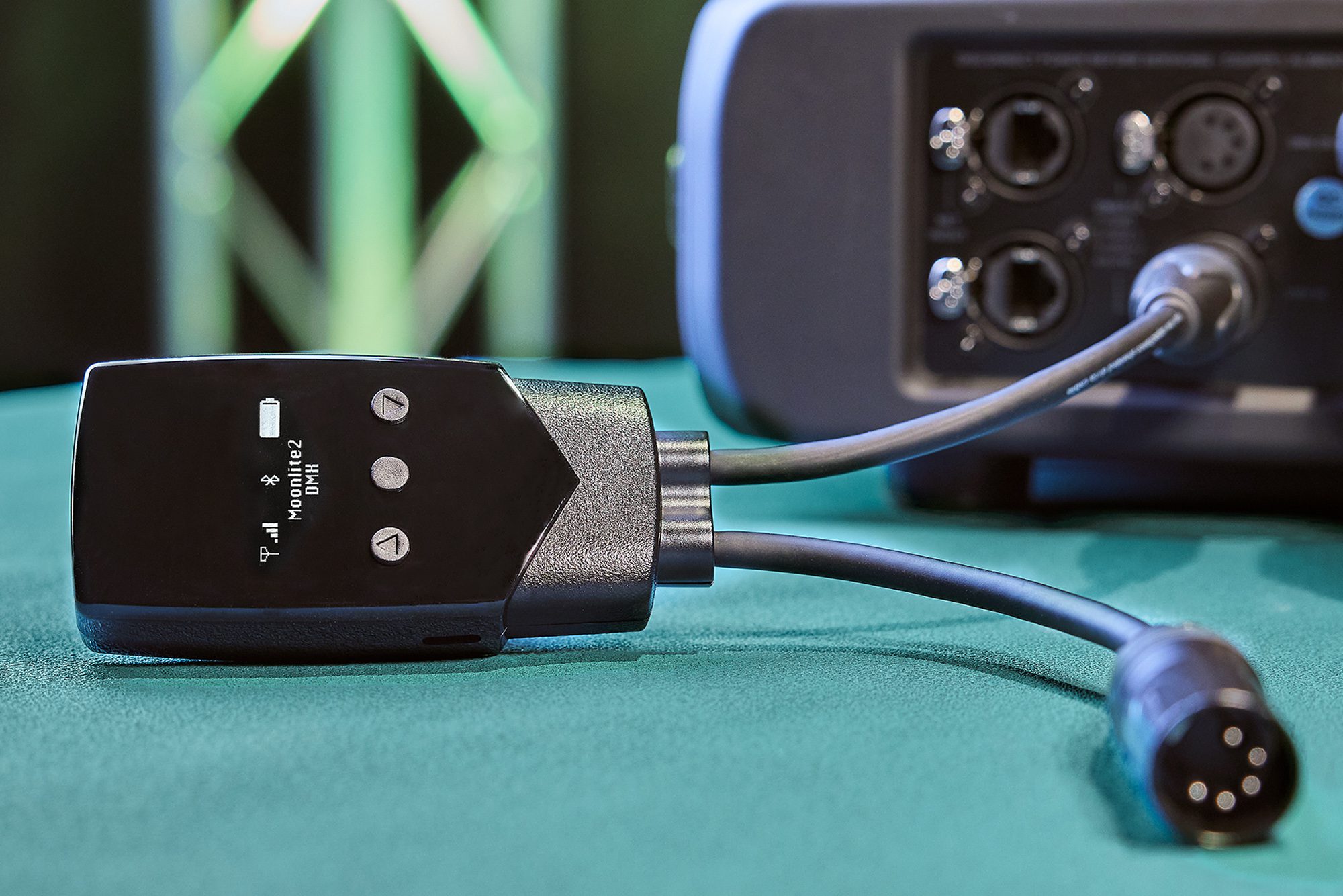 MoonLite² de Lumenradio es un transceptor CRMX portátil que funciona mediante batería que se puede conectar directamente al puerto DMX del dispositivo, lo que le proporciona capacidad inalámbrica instantánea. Con una interfaz de usuario simple con botones de navegación y una pantalla nítida, MoonLite² facilita la prueba y la verificación de los datos DMX, mientras que la funcionalidad del controlador RDM permite configurar los dispositivos directamente desde la aplicación CRMX Toolbox. La batería recargable integrada tiene una autonomía de 12 horas en el modo RX de CRMX. Con conectividad Bluetooth y la capacidad de gestionar señales CRMX y W-DMX, MoonLite² es un transmisor y receptor DMX/RDM inalámbrico capaz de hacerlo todo.