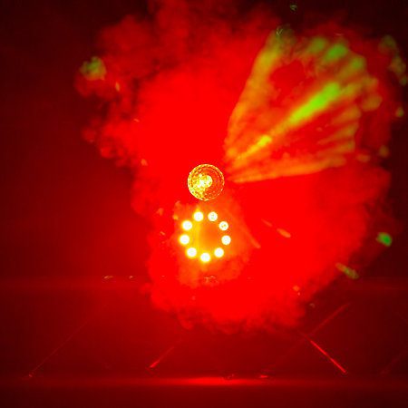 Este dispositivo combina hábilmente la producción de niebla densa, con un volumen de 65 m³ por minuto, con un sistema de espectáculo de luces, creando una atmósfera mágica para cualquier tipo de celebración.