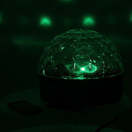 Luz LED de media bola con 3 LED RGB con una potencia total de 9 W, programas integrados, reacciona a la música, el reemplazo de la bola de espejos, ¡versión eco! ¡Combinado con una máquina de humo, obtendrás un resultado fantástico para tus fiestas! Control remoto incluido