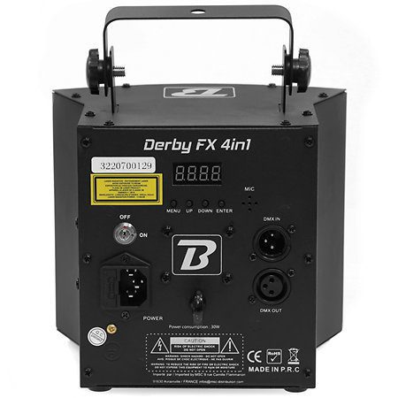 La velocidad de rotación y cambio de color es ajustable, y las proyecciones de colores se pueden combinar con el efecto estroboscópico. Equipado con 4 efectos, el DerbyFX 4 en 1 se adapta a cualquier situación, ya sea decoración, entretenimiento, pista de baile, boda…