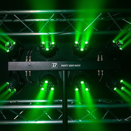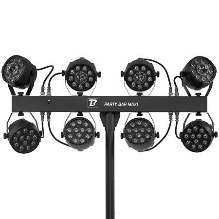 BoomTone DJ Party Bar Maxi es una estación de iluminación completa, diseñada para ofrecer una solución de iluminación todo en uno para anfitriones de fiestas, DJ móviles y establecimientos como bares. Esta unidad combina una variedad de efectos de iluminación en un solo equipo que es fácil de transportar e instalar.