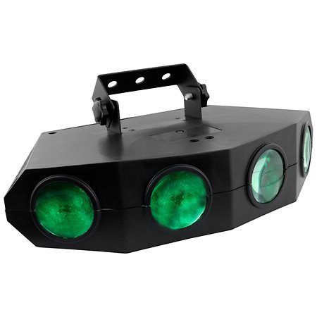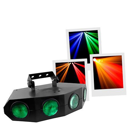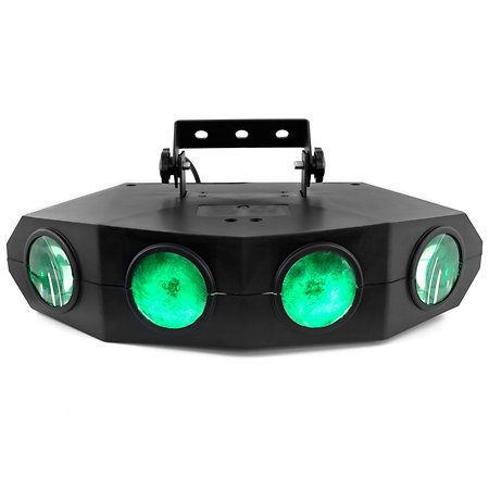 . te permite crear efectos tipo Moonflower, gracias a sus 4 lentes que brindan una amplia cobertura de luz en la pista de baile, paredes o techo