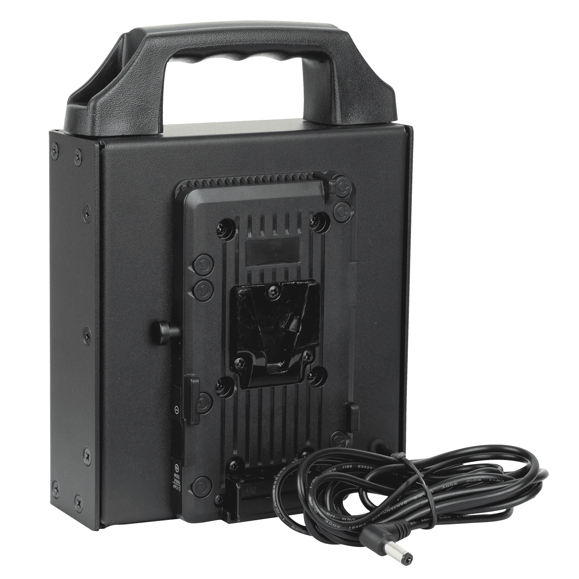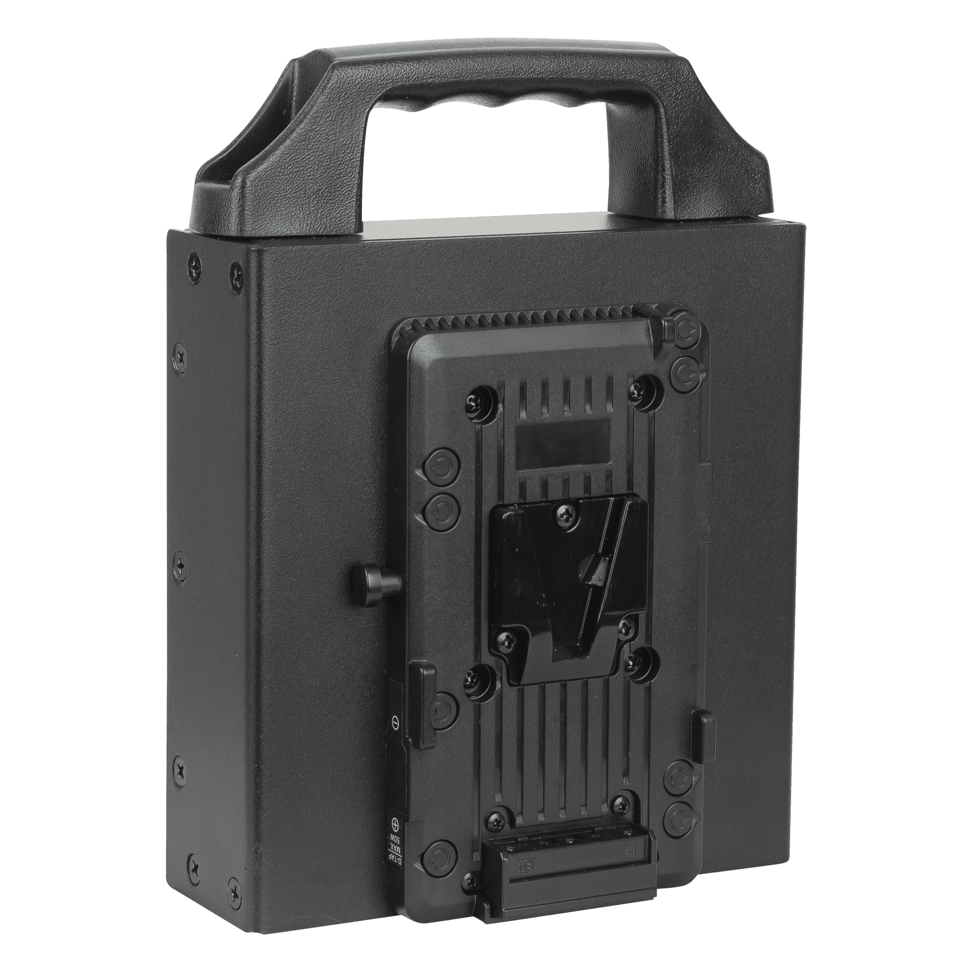 El compartimento para pilas con montura en V tiene un asa ergonómica para transportarlo con facilidad. Con el cable de conexión de 2,5 m podrá usar paneles para medios en un trípode mientras las pilas permanecen en una ubicación estable en el suelo. Las pilas no están incluidas.