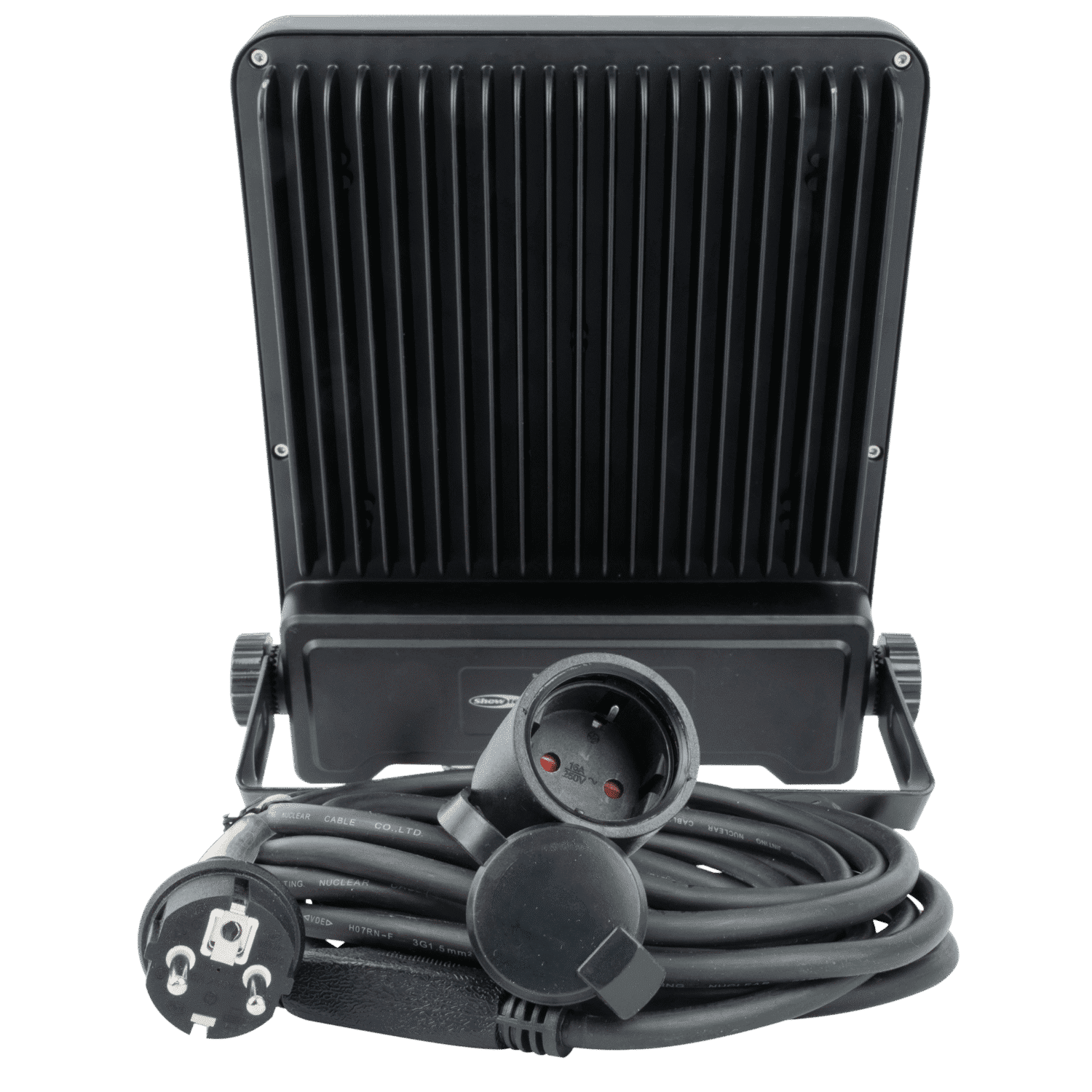 El Showtec Cedda 150W LED Floodlight es un proyector con 256 luces LED de 0,4 vatios que produce un total de 20 000 lúmenes a una temperatura de color de 4200 K. Con una carcasa de fundición de aluminio y una clasificación IP54, este proyector es adecuado para instalaciones temporales en exteriores. El cable de alimentación tiene conectada una toma adicional que permite interconectar fácilmente varios dispositivos. También incluye un soporte resistente que permite montar el proyector con seguridad.