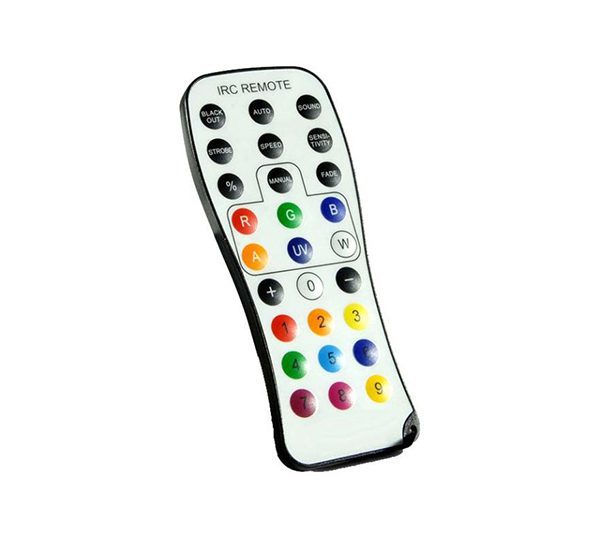 Control remoto por infrarrojos (IRC) fácil de usar para dispositivos de iluminación compatibles con IRC. Proporciona acceso instantáneo a escenas preprogramadas, opciones de mezcla de colores y ajustes de velocidad sobre la marcha. Este control remoto compacto y liviano tiene un alcance aproximado de 30 pies (9 m).