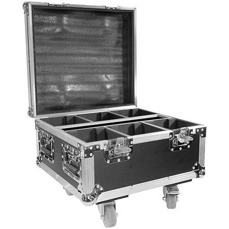 El BoomTone DJ EZBOX es un pack de 6 focos LED RGBW 4 en 1 de 4 x 15 W, que se suministra con un estuche de transporte con ruedas para un transporte fácil y seguro. Con sus 4 u 8 canales DMX, 4 botones y pantalla digital, la navegación es sencilla y rápida. Ofrece diversos modos, como Auto, Audio, DMX512, Maestro/Esclavo, incluyendo control remoto por infrarrojos y DMX inalámbrico.