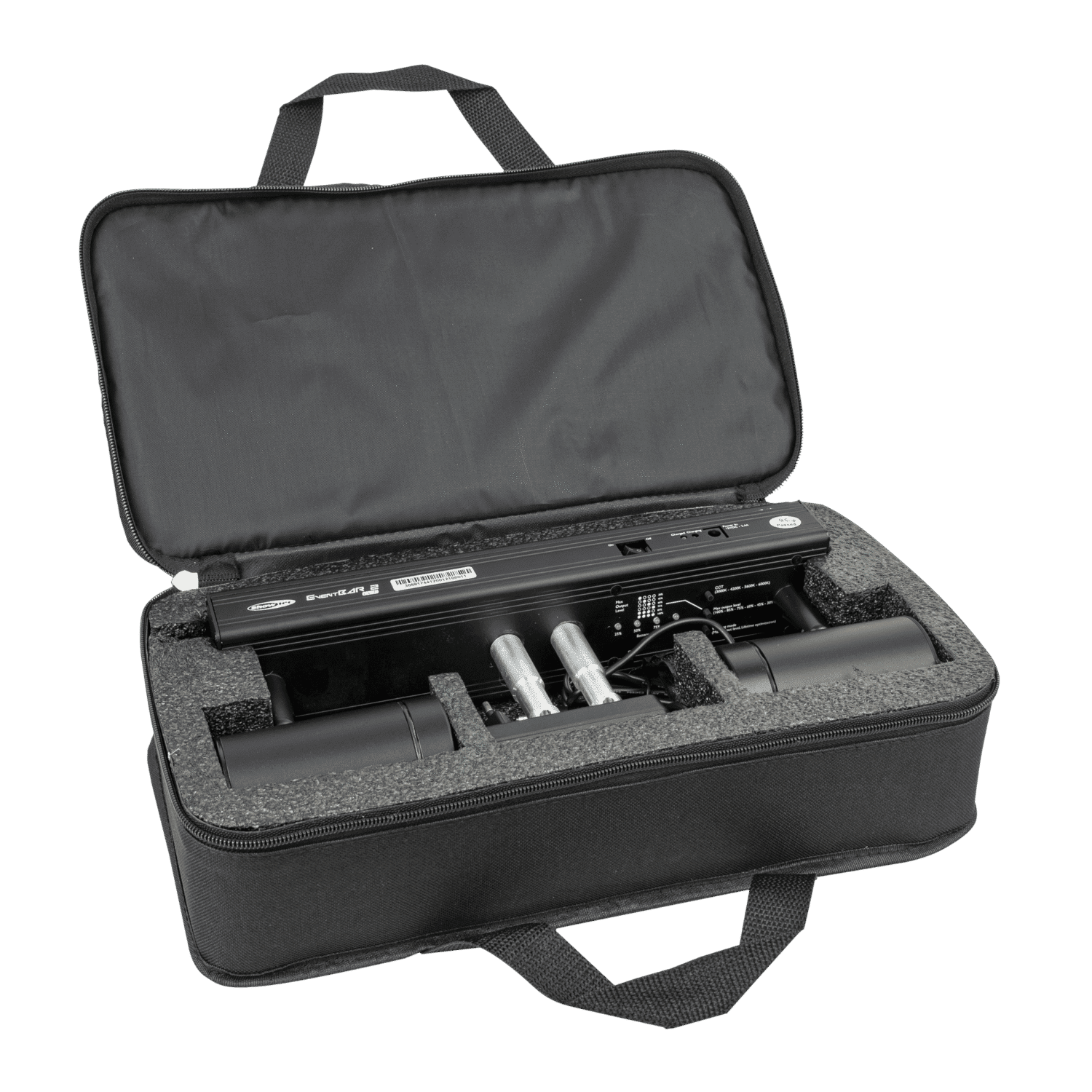 La batería de la Event Bar 2 CCT dura entre 4 y 8 horas. La autonomía de la batería depende del modo elegido en el que se utilice. Se incluye un difusor de 25 ° para aumentar su ángulo de haz fijo de 10 °. También se incluye una bolsa de transporte específica.