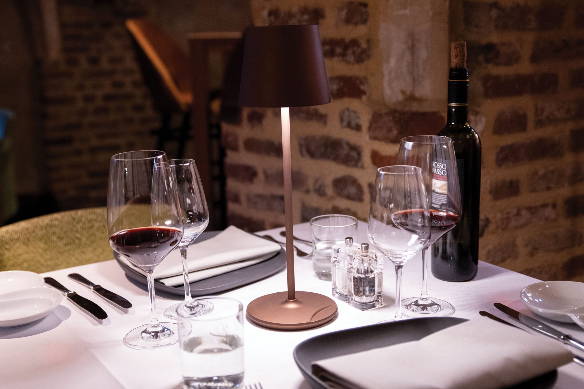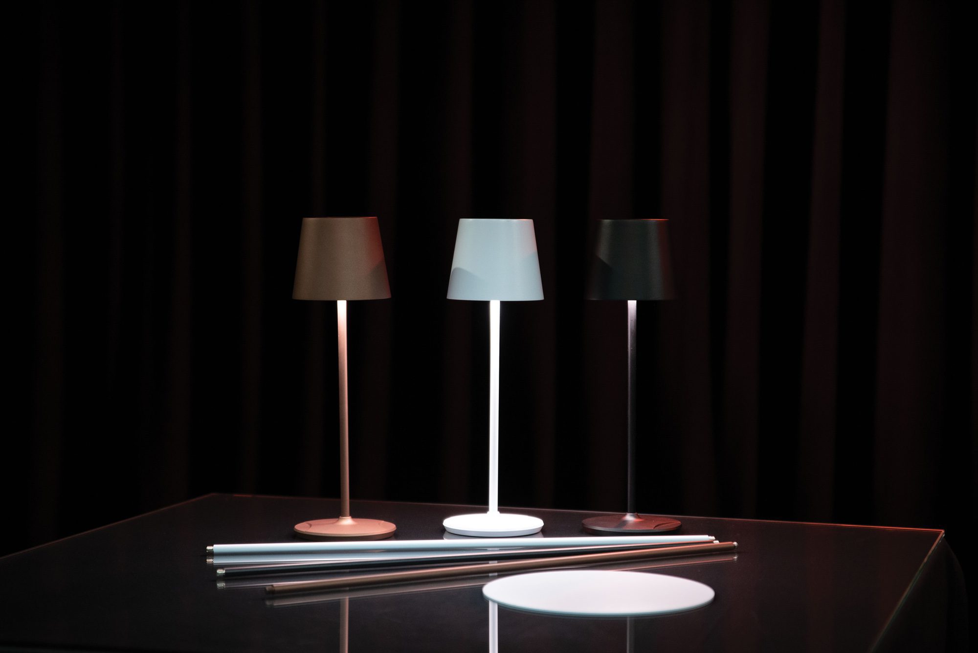 La luz de mesa SW EventLITE está disponible en color negro, blanco y bronce. También se puede elegir un tubo de extensión de 50 cm adecuado para cada versión. Gracias a su adaptador de rosca M8 universal, se puede elegir el tubo distanciador único que se desee. La base tiene tres imanes, lo que le proporciona un buen agarre sobre metal. Es posible colocar una placa base opcional de 30 cm bajo el mantel si se desea un mayor agarre.