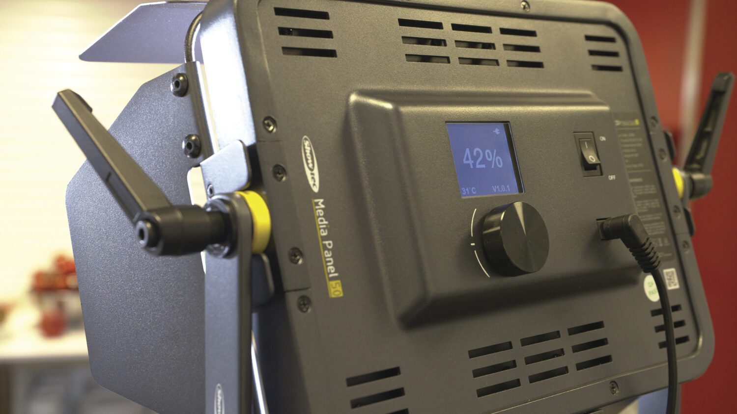 El Showtec Media Panel 50 es un panel LED de vídeo blanco luz de dia de 50 vatios con un alto CRI >98 y un ángulo de campo de 143°, adecuado para diversas aplicaciones de estudio y vídeo. Su temperatura de color estable y altamente precisa de 5000 K con una salida máxima de 4000 lúmenes es ideal como solución de iluminación de medios de comunicación de corta distancia para vloggers, streamers y presentadores de seminarios web. El Media Panel 50 dispone de una sencilla función de regulación manual gracias a su gran mando giratorio y a la pantalla LED de la parte posterior. Viene con un robusto soporte con asas de sujeción ajustables para una rápida configuración móvil, una puerta de barniz de cuatro hojas, un adaptador de espiga y un adaptador de corriente. Un soporte de batería de montaje en V es opcional para el uso móvil.