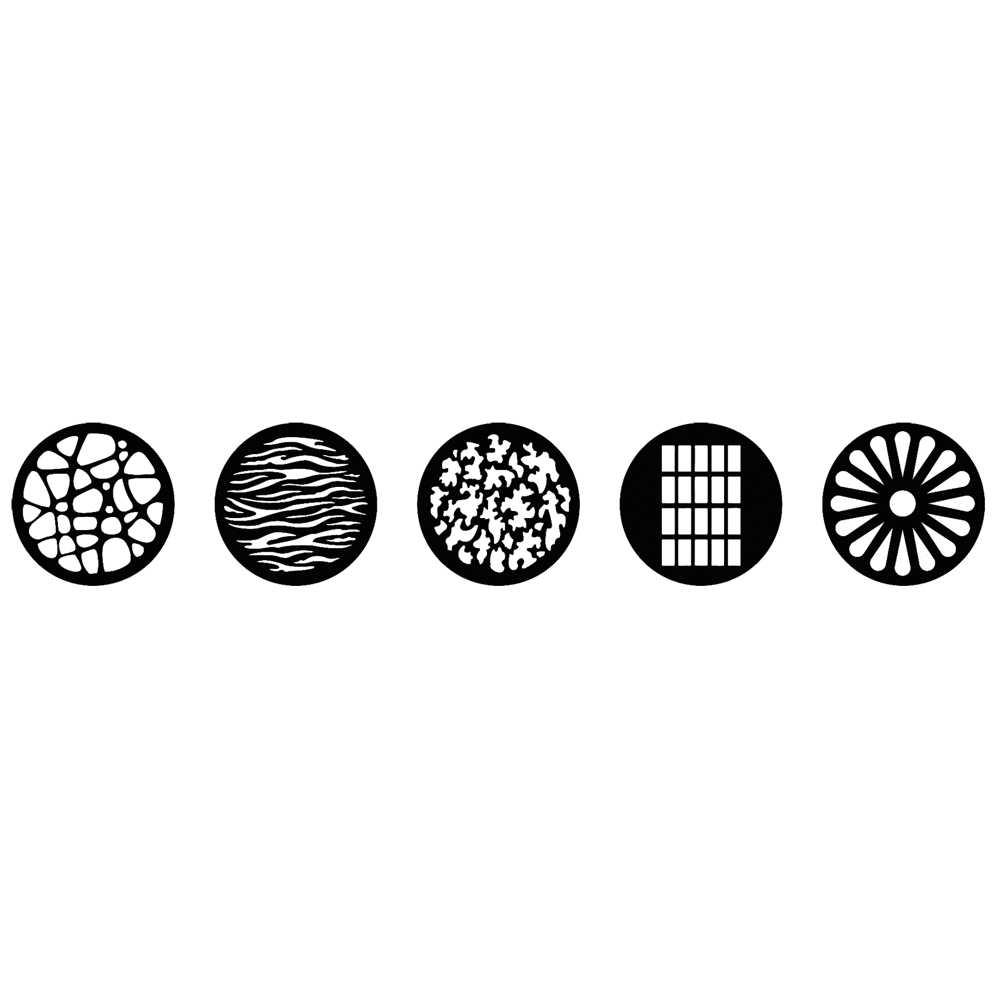 Cinco gobos de diseño incluidos
