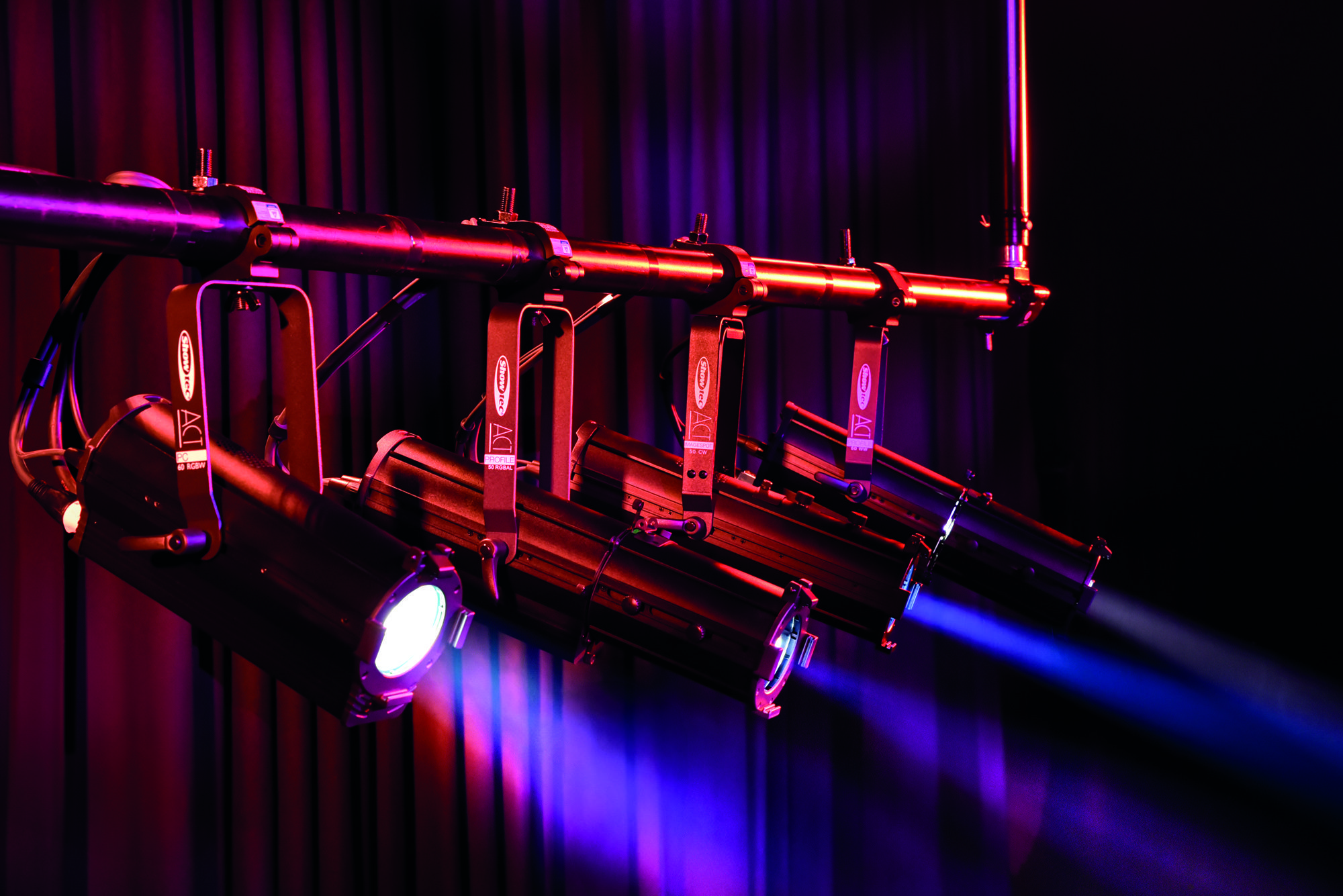 Los Fresnels ACT proyectan un campo de luz suave con un rango de zoom ampliamente controlable, dimmer y estrobo, adecuados para aplicaciones de corto a medio alcance. Todos los ACT Profiles consisten en recortes equipados con una lente de zoom para proporcionar un campo de luz duro y enfocado con precisión a largas distancias. Las luminarias Showtec ACT Flood proyectan un efecto Wash muy luminoso, proyectando una luz RGBW brillante con un gran ángulo en aplicaciones de corto alcance.