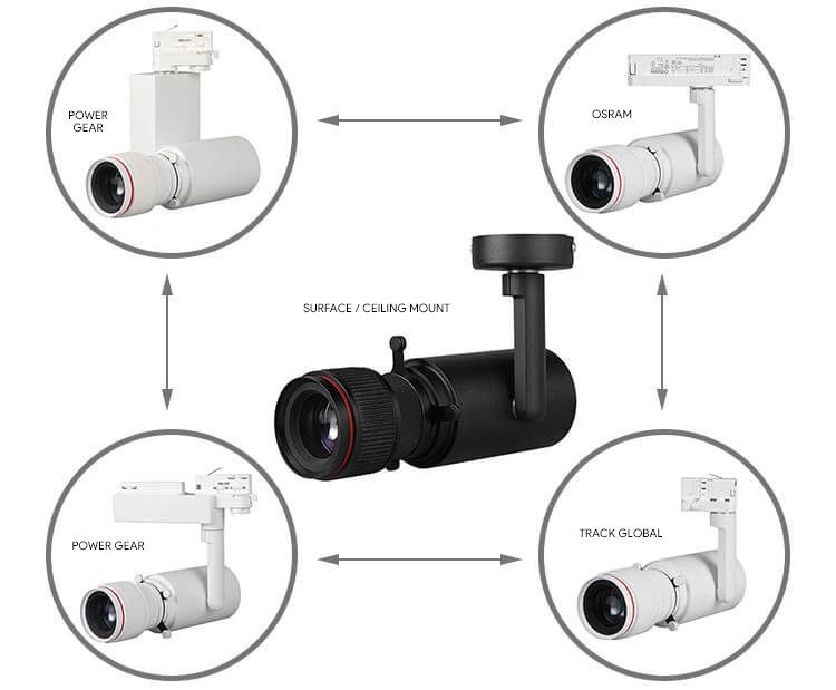 | EXPOTWWH | 28w | 800lm | Zoomable 20-36° 15-25° | 2700k 4000k 6000k | 90 | OSRAM | No | 220 – 240v | White | ¢85x H260-300 (lamp) | 6pcs 15kgs | 48 x 45 x 42 18.5kgs | Surface / Ceiling mount diameter 80*H 30mm | |