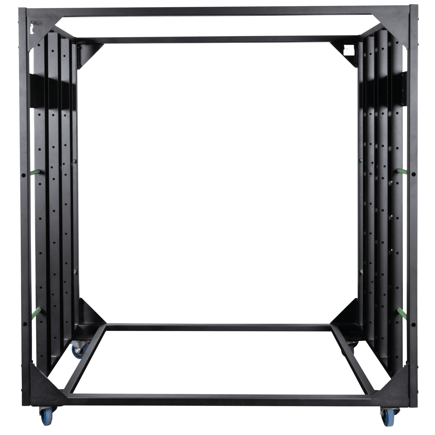 La solución Showgear LoadMaster Rack 8×16 es una estantería profesional diseñada para el transporte y almacenamiento seguro y eficaz de dispositivos de iluminación. Su diseño modular permite un montaje rápido y una configuración flexible, por lo que resulta ideal para giras, alquileres y locales. Se entrega en un kit que ahorra espacio y está diseñado para facilitar su manejo y montaje. Sus cuatro ruedas giratorias con freno ofrecen una excelente maniobrabilidad y estabilidad. El bastidor es compatible con una serie de accesorios disponibles opcionalmente para adaptarlo a sus necesidades específicas.
