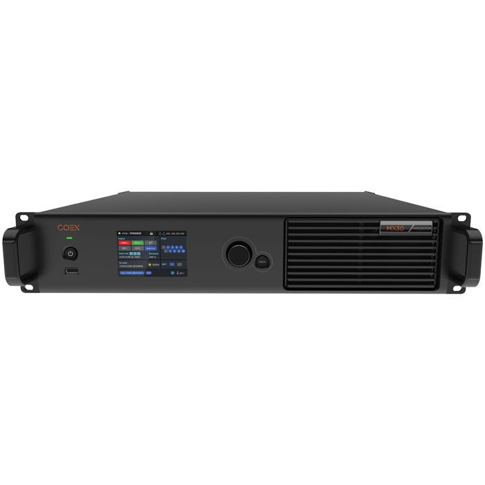 El MX30 de Novastar es un controlador de pantalla LED todo en uno que integra el control de procesamiento de vídeo y del sistema LED. Al integrar múltiples entradas y salidas, el MX30 ofrece varias posibilidades de configuración. Está equipado con una entrada HDMI 2.0 + loop, una entrada HDMI 1.4 + loop, una entrada DP 1.1 y dos entradas 3G-SDI + loop. Sus salidas incluyen diez puertos de Gigabit Ethernet, dos puertos ópticos 10G y un puerto óptico S/PDIF. También incluye dos puertos de red y un puerto auxiliar integrado, así como una entrada de Genlock con loop. Un mando de control y un botón trasero, junto con una pantalla TFT de 3,5 pulgadas, facilitan el control del aparato. El MX30 también se puede controlar mediante el software VMP integral fácil de usar, que garantiza un funcionamiento y un control sencillos. También permite el control en cascada a través de Ethernet y admite los protocolos SNMP y Art-Net. Las funciones avanzadas incluyen tres capas independientes, escalado de imagen, corrección de color de 14 canales, soporte de baja latencia y monitorización del sistema de visualización. El MX30 puede montarse en un bastidor de 19 pulgadas.