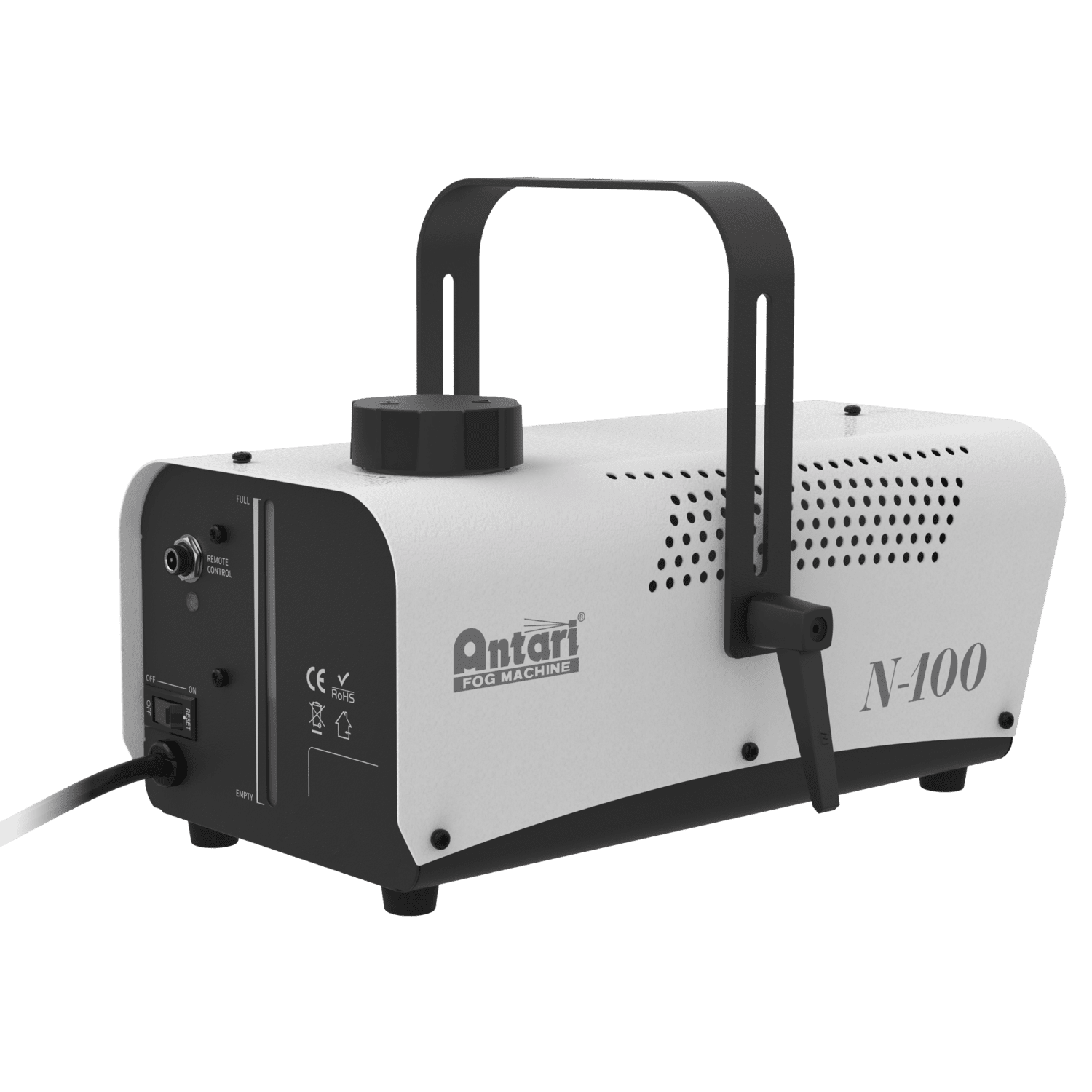 El dispositivo Antari N-100 Fog Machine es una máquina de bruma elegante y compacta diseñada para ofrecer efectos atmosféricos de calidad profesional en recintos pequeños y medianos. Con un elemento calefactor de 700 W y un tiempo de calentamiento rápido de 4 minutos, es la solución ideal para DJ itinerantes, discotecas, bodas y fiestas privadas. A pesar de su modesto tamaño, el dispositivo N-100 ofrece un gran rendimiento con un bajo consumo de fluido de 12 ml/min y un depósito de fluido de 0,8 litros, lo que garantiza un rendimiento constante durante todo su evento. Su elegante carcasa blanca con el logotipo en gris añade un toque de elegancia, mientras que el indicador integrado de nivel de fluido le permite tenerlo controlado en todo momento. La solución N-100 se maneja mediante un mando a distancia por cable e incluye un soporte colgante para una instalación flexible. Es compatible con los líquidos antibruma Antari FLG y FLR, y ofrece opciones de bruma normal y extradensa.