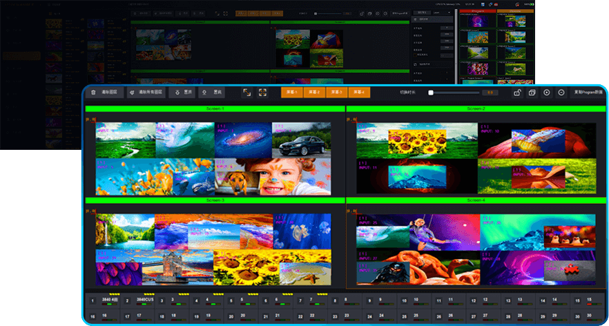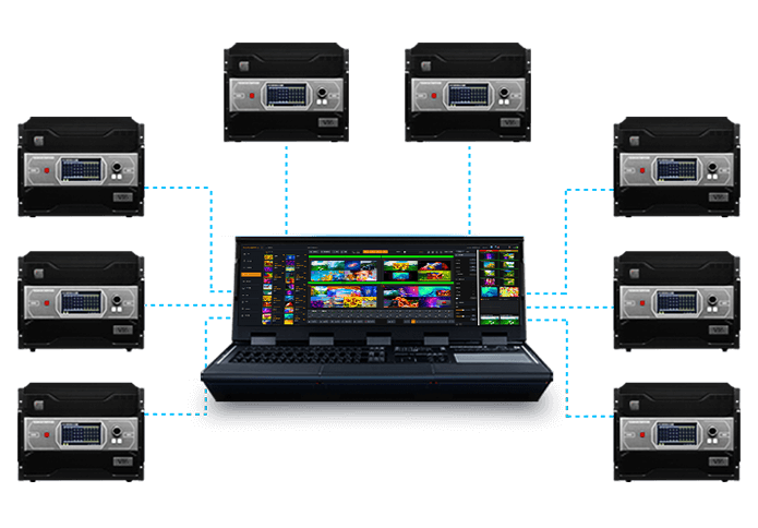 Coopera con la consola MAG-H9, puede realizar el cambio de fundido entre múltiples capas o múltiples escenas, ampliamente aplicado en el salón del automóvil, reuniones comerciales, lanzamientos de productos y representaciones escénicas.