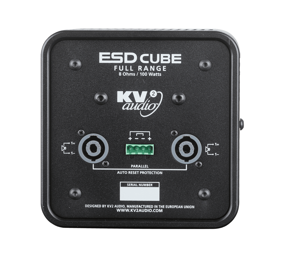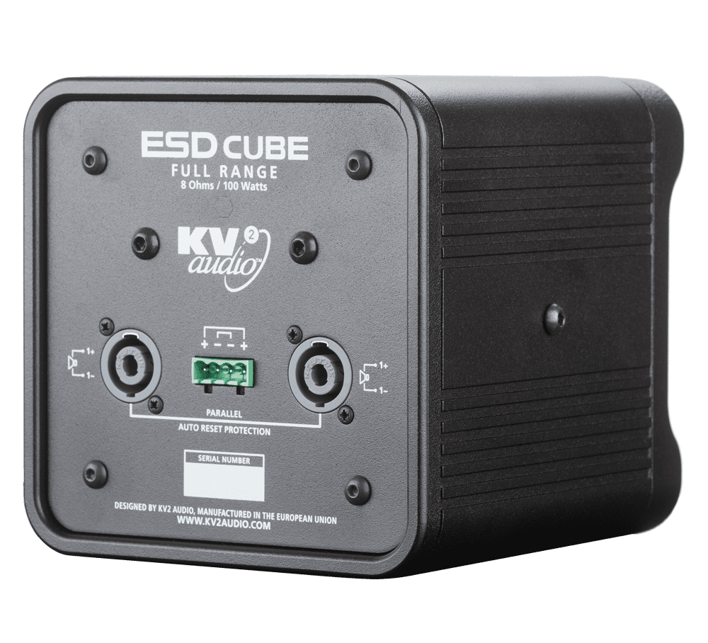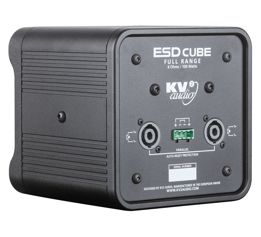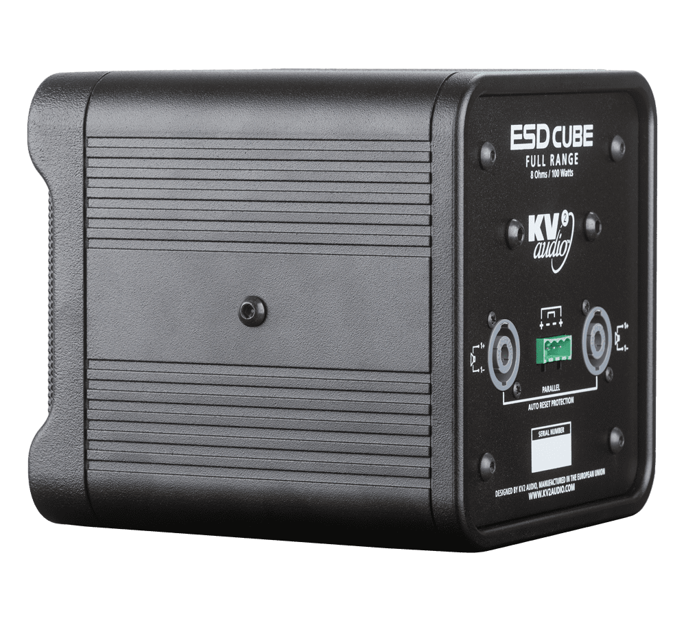 The ESD Cube is a very high quality ultra compact low profile 5” passive loudspeaker utilising a unique trans-coil design for superior vocal reproduction, extended high frequency response, increased dynamic range and the lowest distortion of any comparable speaker in its class. Housed in an aluminium enclosure its compact dimensions make it extremely discreet for peripheral reinforcement in theaters, bars, clubs, churches, museums or Tourist attractions. Along with our new ESP1000 amplifier a combination of up to 8 ESD Cube units, or 4 Cube units with either one or two ESD1.10 subwoofers can be run – learn more about the combinations. A simple proprietary flying bracket completes the system for a low profile look and easy installation and it’s included with the box.