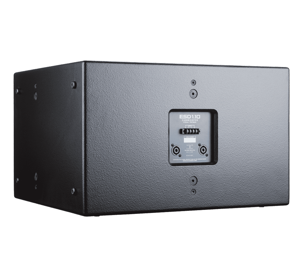 The ESD1.10 is a compact passive 10″ subwoofer featuring a high quality neodymium transducer. The smallest subwoofer within the KV2 range, it has been designed to compliment the ESD Cube Ultra compact Passive loudspeaker, creating a full range system solution when partnered with the Cube and ESP1000 amplifier. With power handling of 500 watts the ESD1.10 is capable of delivering tight, fast and controlled bass response, at high output levels from a very compact cabinet and is ideal for any discreet low frequency applications alongside other KV2 Audio products.