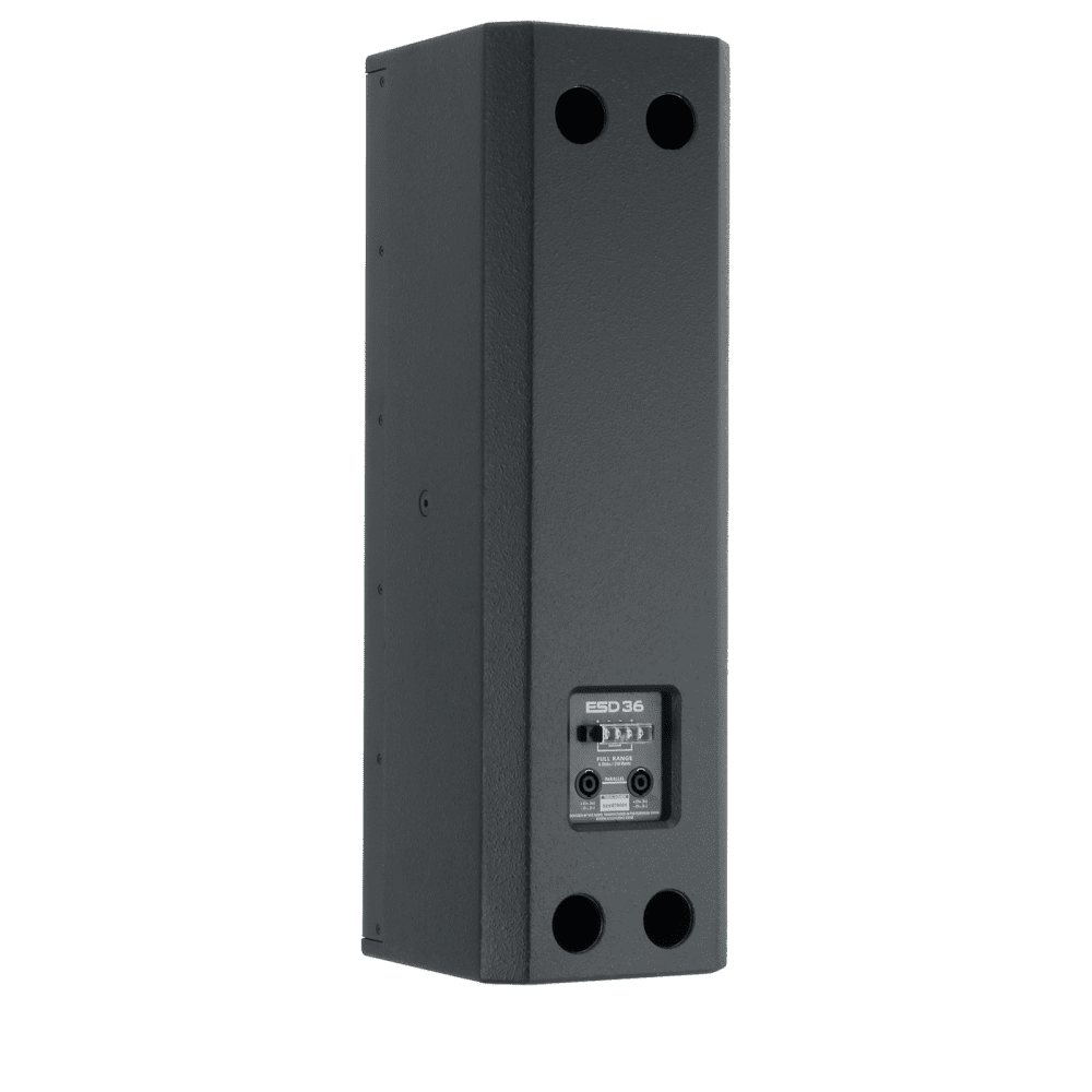 One of the more unique loudspeakers offered by KV2 Audio the ESD36 is a passive, full-range 3-way speaker system for speech and music reproduction. The ESD36 features a 6″ driver dedicated to high quality mid-range reproduction and a further two low frequency 6″ drivers for enhanced bass extension. Alongside the same compression driver as featured in the popular EX6, the ESD36 offers comparable performance to many 12″ cabinets with an enhanced vocal performance from this 3-way design.