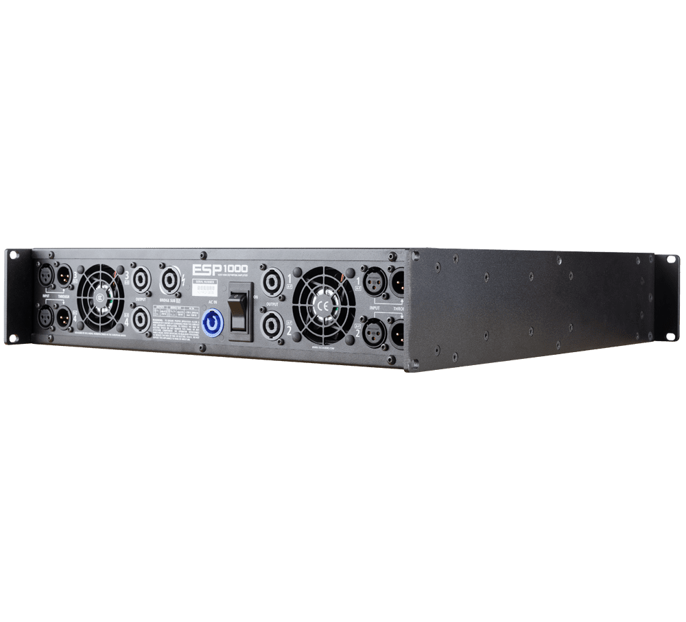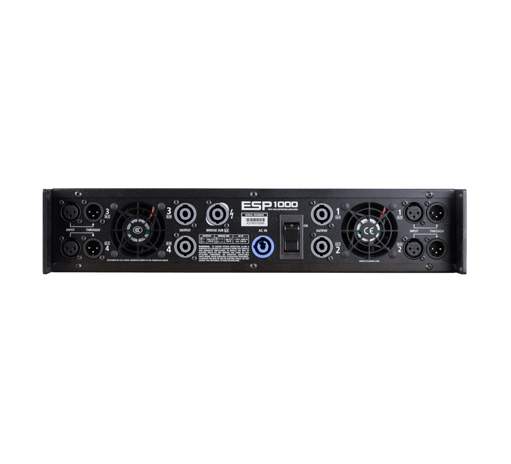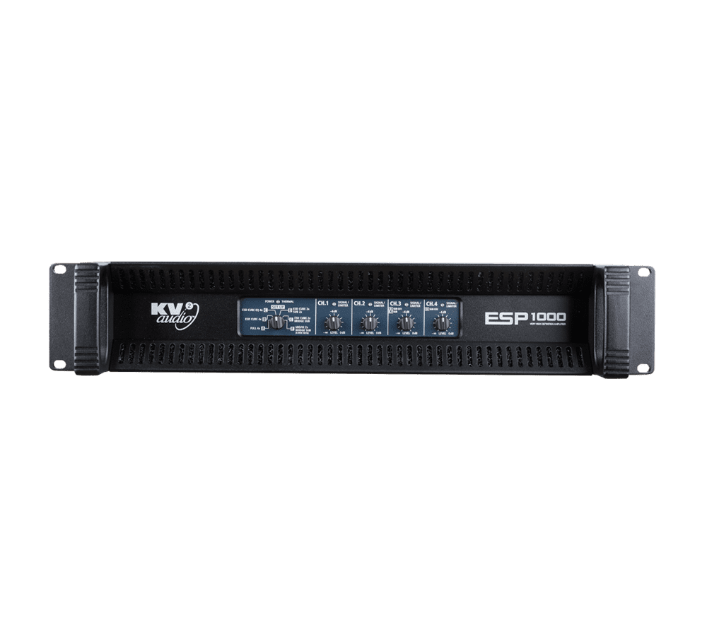 The ESP1000 is a four channel rack mountable power amplifier specifically designed for optimised performance with KV2 Audio’s ESD Cube / ESD1.10 subwoofer system. The unit contains four separate 250 watt amplifiers, two independent power supplies (two channels running off each power supply), four signal paths, inputs and outputs as well as limiting and equalization for given passive loudspeaker / subwoofers. Six independent configurations are selectable and it can be used to power any ESD units and other ranges of passive loudspeakers.
