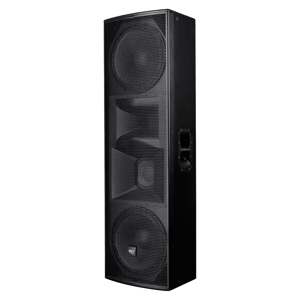The ESR215S is a slim version of large scale full-range 3-way loudspeaker system with a wide horizontal dispersion of 110 degrees. Designed for use with the ESR3000MkII tri-amplified stereo electronic control pack, the ESR215S loudspeaker system features two 15″ woofers, an 8″ mid-range driver and the same large scale NPVD 3″ compression driver found in KV2 Audio’s VHD mid-hi enclosures. With a wide and smooth frequency response the ESR215S is ideal for theatre or stadium applications. Like the ESR212, it incorporates multiple M10 fly points and various brackets and flyware are also available.