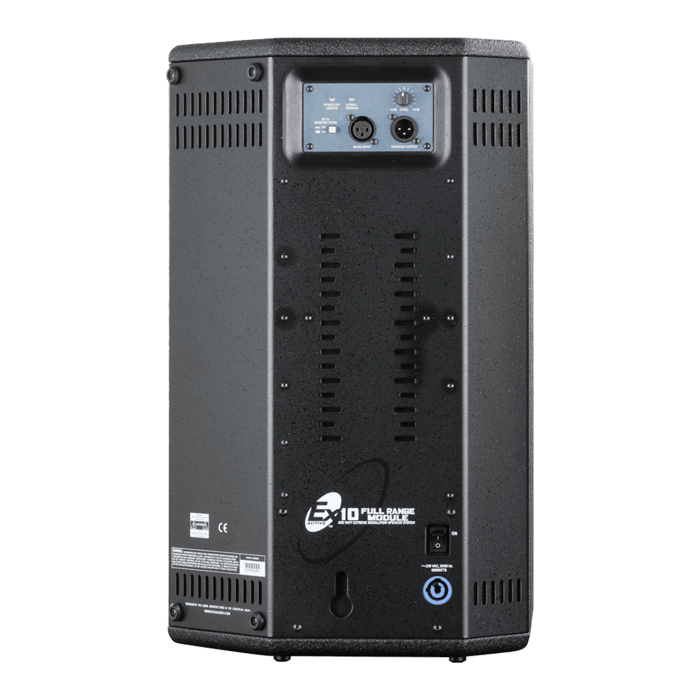 The EX10 is a very compact 2-way, high-output, full range active speaker system. Despite its 10″ woofer and remarkably small footprint it successfully takes on many larger 12″ models and is favored by audio visual and rental companies all over the world for its sheer quality and tremendous output. On-board electronics ensure fast, easy set up and complete control with electronic crossovers, phase alignment, equalization and speaker protection integrated into the EX10’s amplifier module.