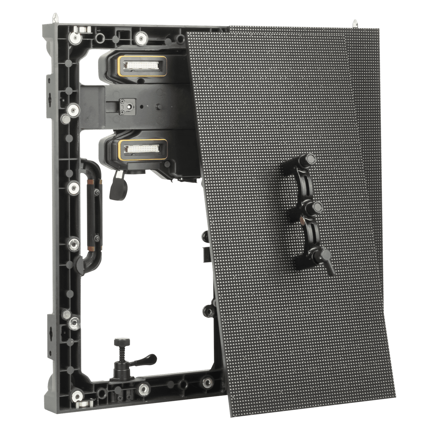 Nuestros paneles de la serie Premiere G2 están equipados con cierres rápidos. Esto permite que se atornillen fácilmente. Además, no necesita ninguna otra ayuda durante la instalación de los paneles. Los paneles están equipados con imanes incorporados, por lo que puede sujetar el panel con una sola mano durante la instalación. Los pasadores guía le ayudan a alinear rápidamente las pantallas.