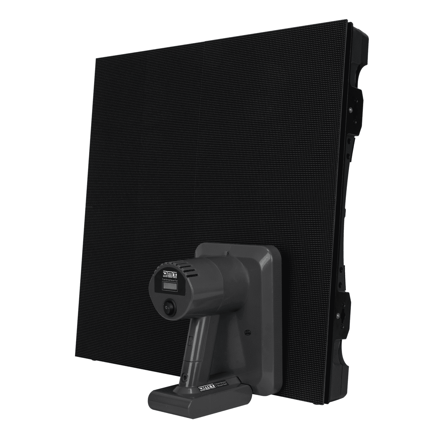 Esta herramienta de vacío de servicio frontal de DMT está diseñada para desinstalar módulos LED montados mediante imanes en paneles LED, como las pantallas de píxeles PS6.9 Blue Line de la serie Alpha y de la serie Premiere de DMT. La herramienta permite sustituir componentes dañados o defectuosos desde la parte frontal de la pantalla sin desmontar todo el panel. La herramienta funciona con batería y se suministra con una batería, un cargador y un estuche.