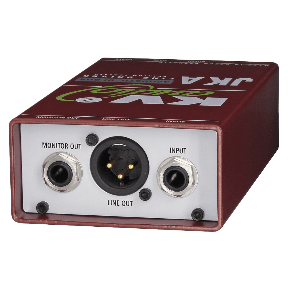 The JKA is a dedicated DI for acoustic instruments. The JKA features a high-impedance 1/4″ jack input capable of receiving signal from all types of pick-ups. A +10dB gain boost is available for low-level instruments. The JKA also features a tuneable notch filter for eliminating the resonant frequency in an acoustic instrument, reducing feedback issues.