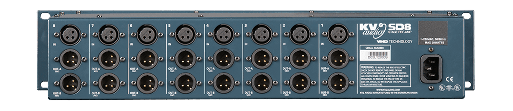 Specifically designed as part of the VHD system as a multi-channel stage preamplifier Line driver to maintain signal integrity between the stage Microphone instrument inputs and mixer over long distances