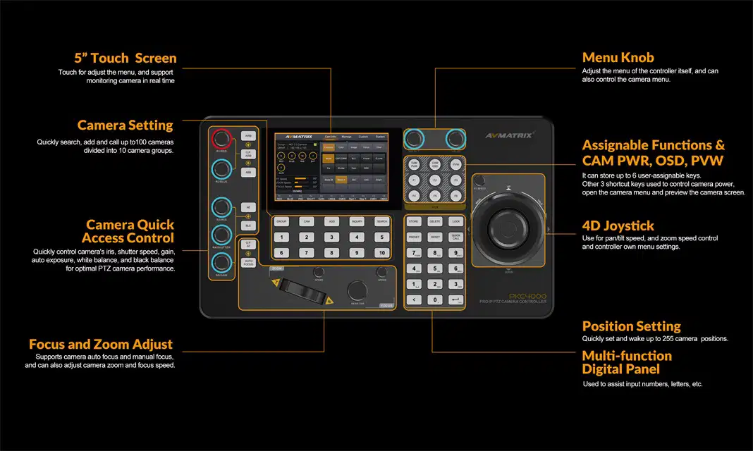 • Fácil manejo con pantalla táctil de 5 pulgadas y joystick 4D