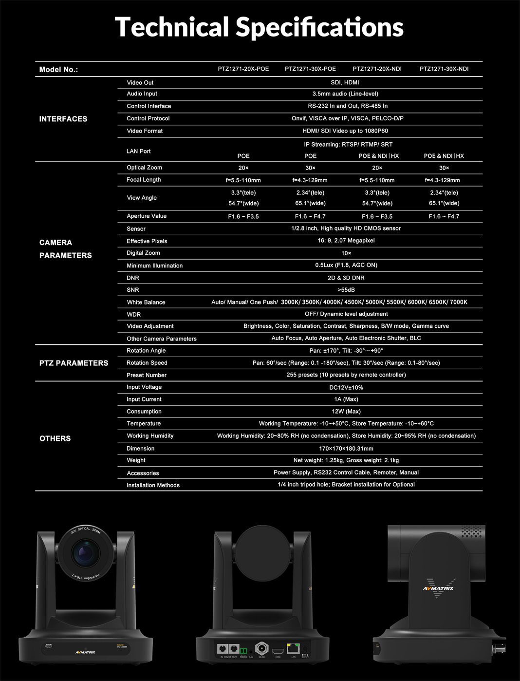 > > > > > > SKU: PTZ1271-20X-POE PTZ1271-30X-POE PTZ1271-20X-NDI PTZ1271-30X-NDI